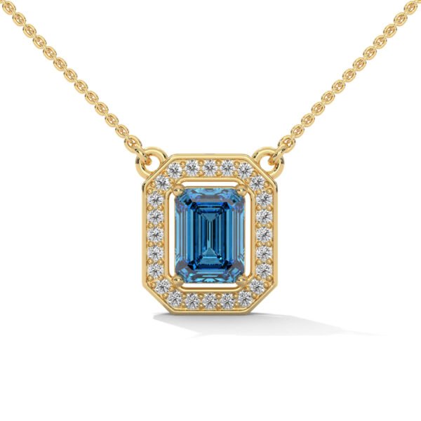 Blue Halo Emerald Pendant (With Chain)