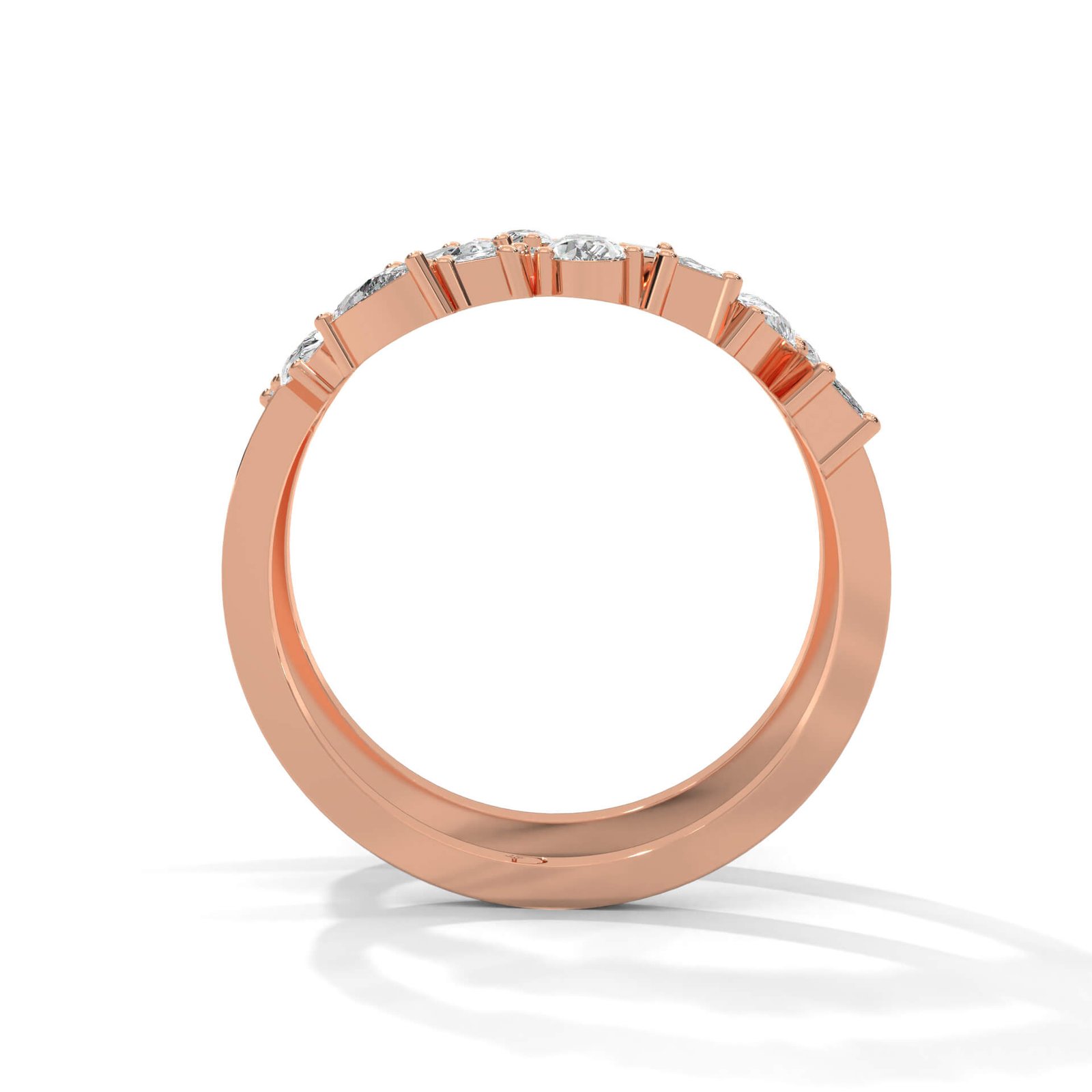 A modern masterpiece featuring 9 emerald-cut and 10 pear-shaped diamonds totaling 1.90 ct—elegance that wraps around your finger twice.