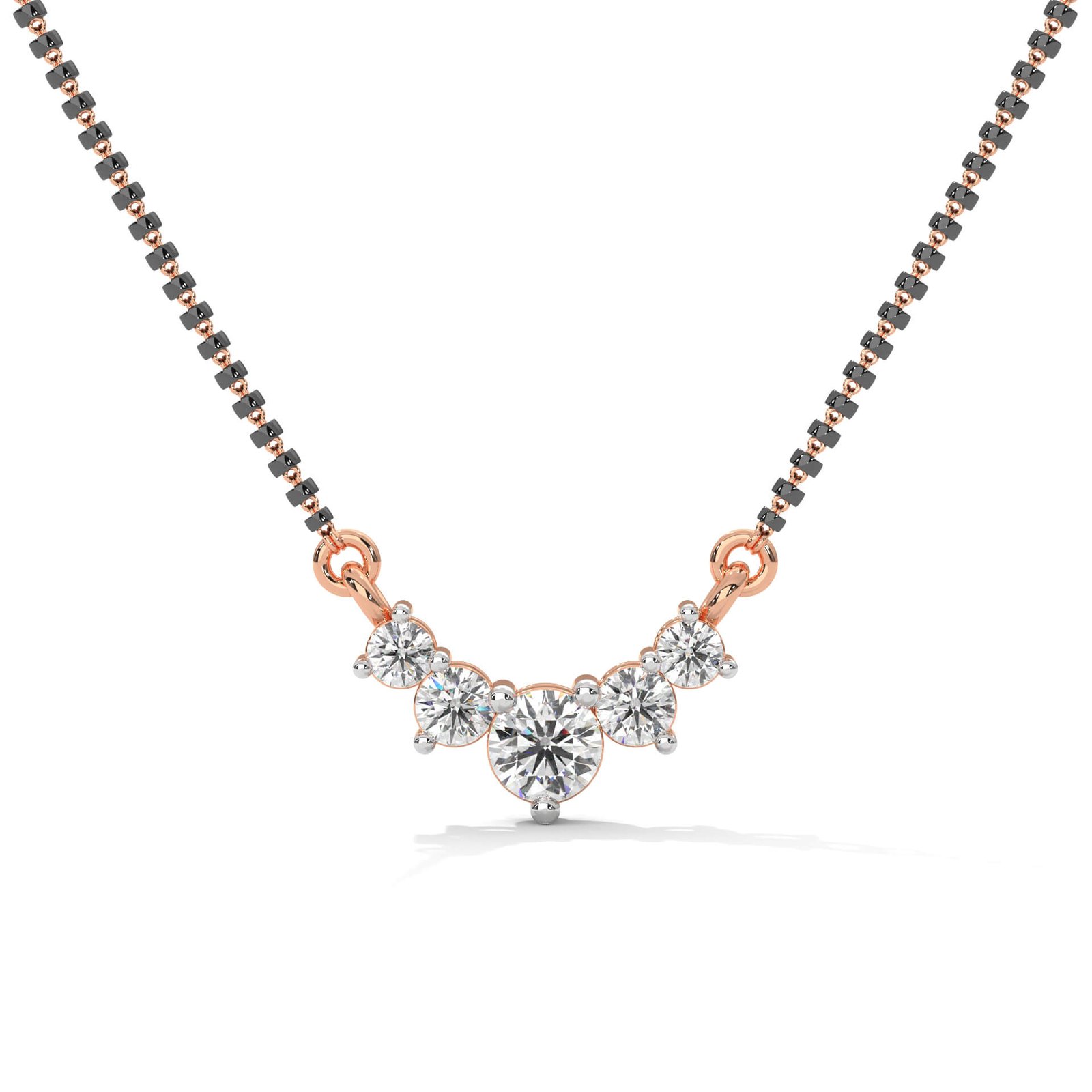 Five perfectly balanced diamonds totaling 3.00 ct radiate brilliance in this celestial-inspired mangalsutra. A symbol of light, harmony, and eternal connection.