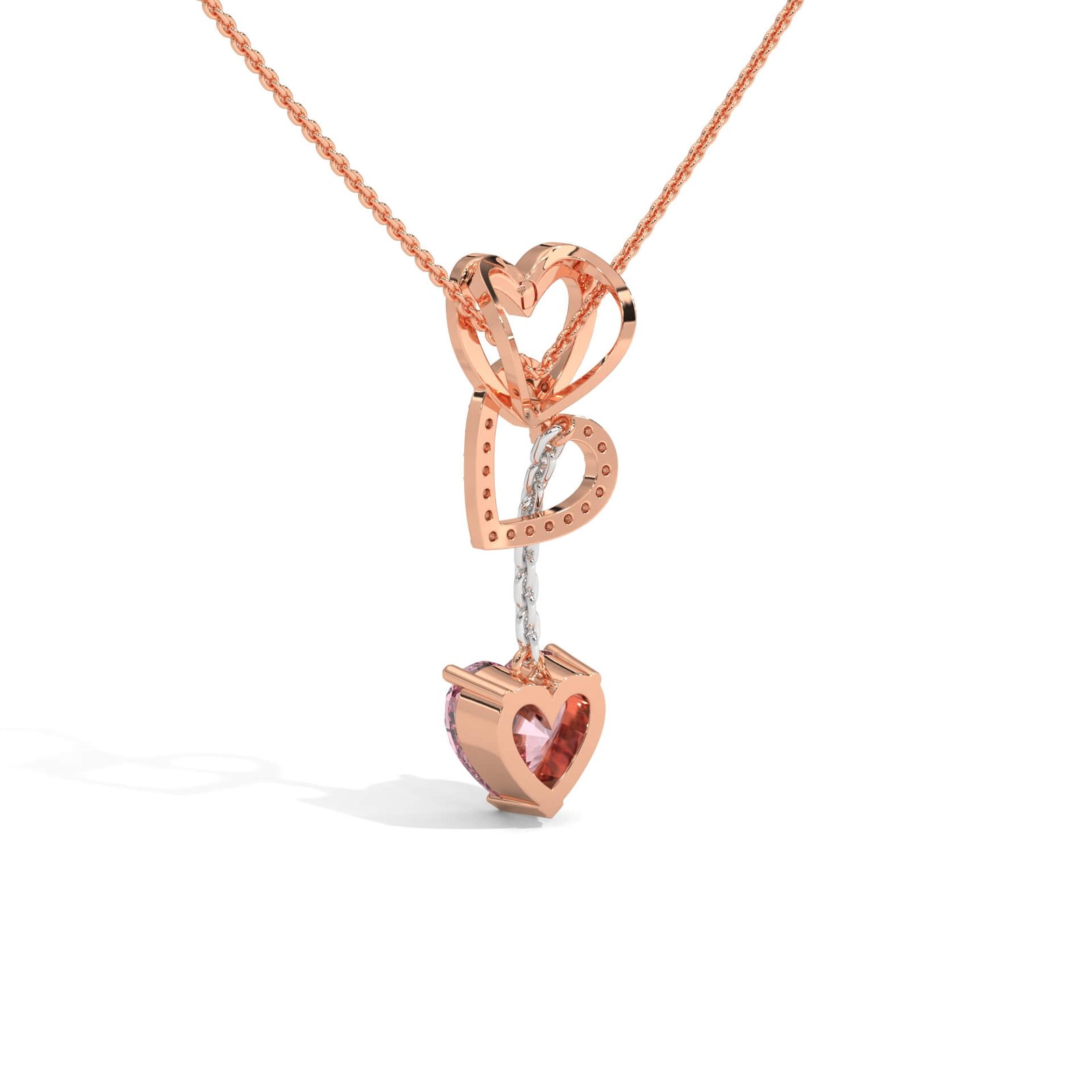 A diamond-lined heart and abstract motif gracefully lead to a dangling pink heart, capturing the rhythm of love in motion.