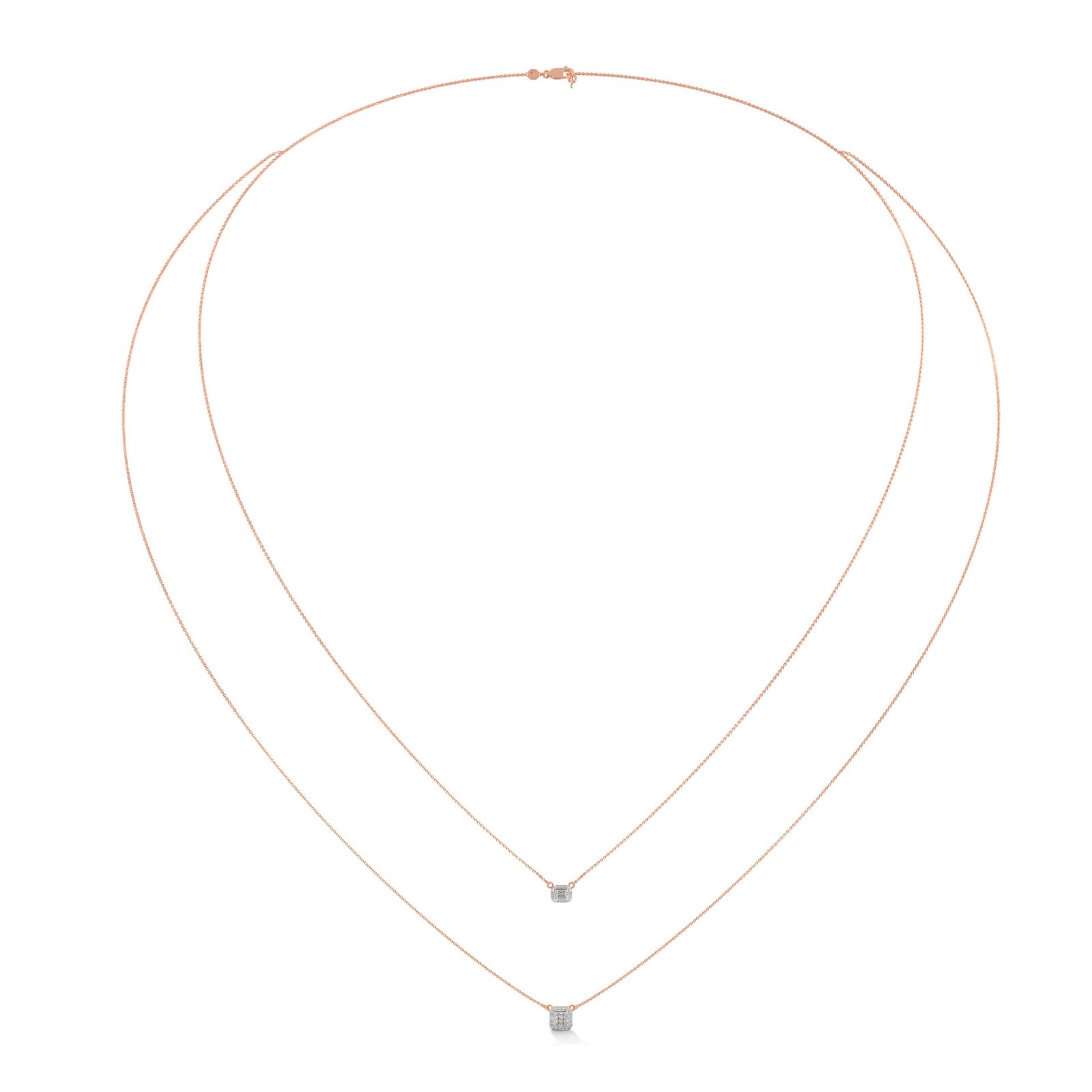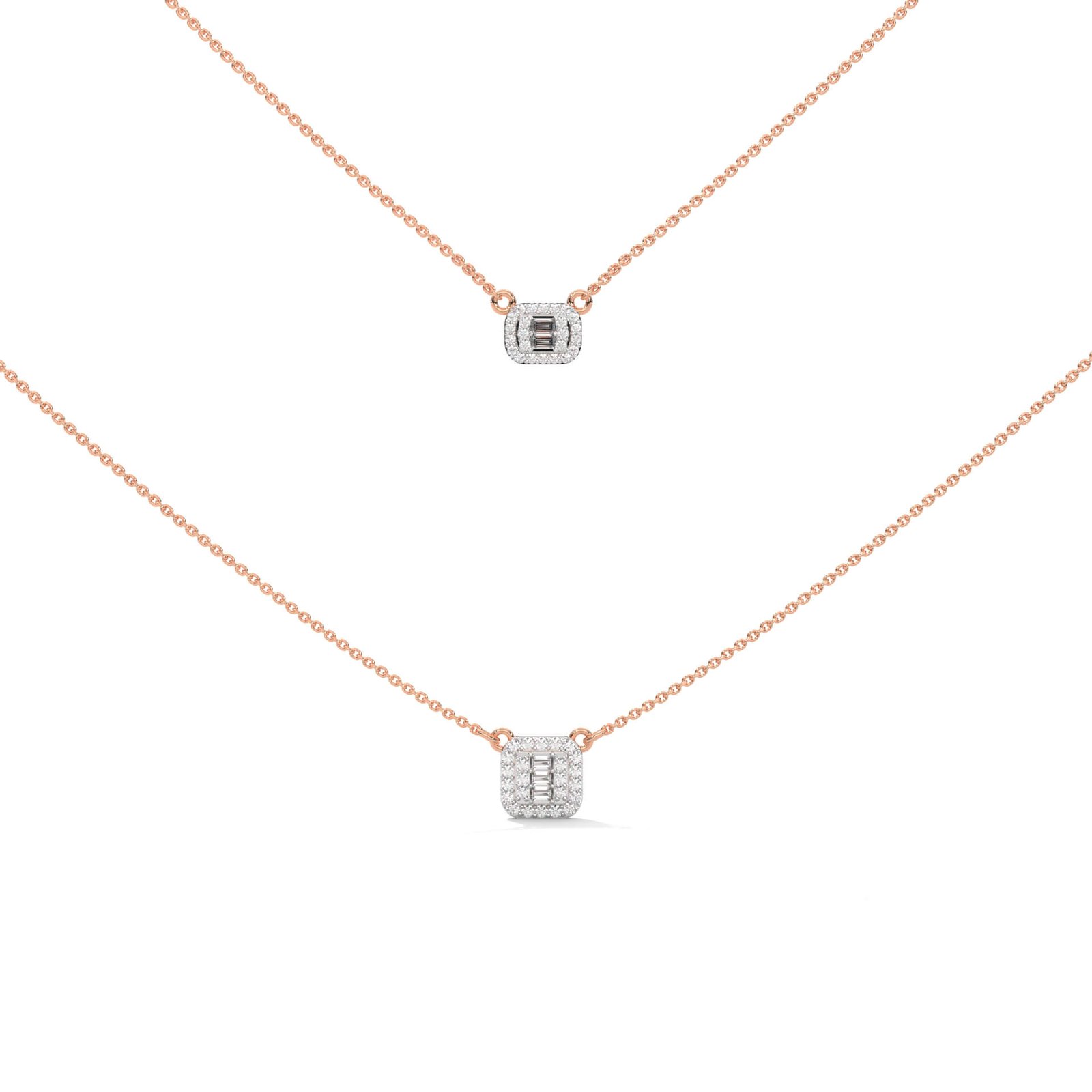 Inspired by Art Deco style, this pendant combines 53 diamonds—round and baguette cuts—totaling 0.62 ct, to create a bold, architectural silhouette that balances elegance with edge.