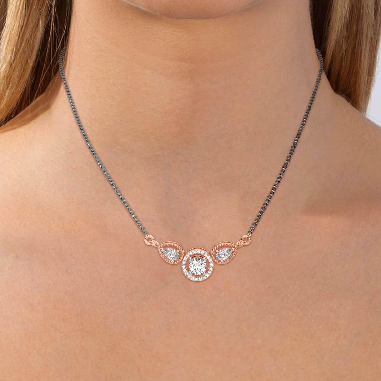 Adorned with 25 diamonds totaling 1.10 ct, including two delicate pear-shaped stones, this piece mimics the beauty of dewdrops kissed by morning light. A poetic addition to your ensemble.