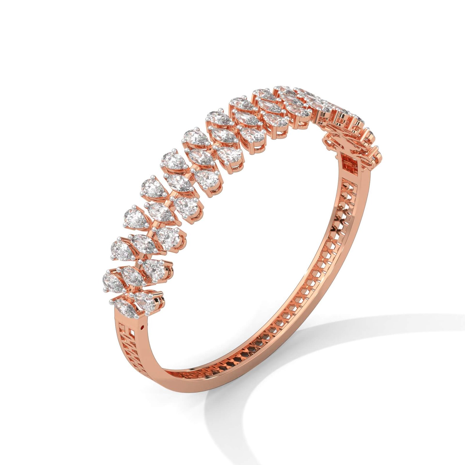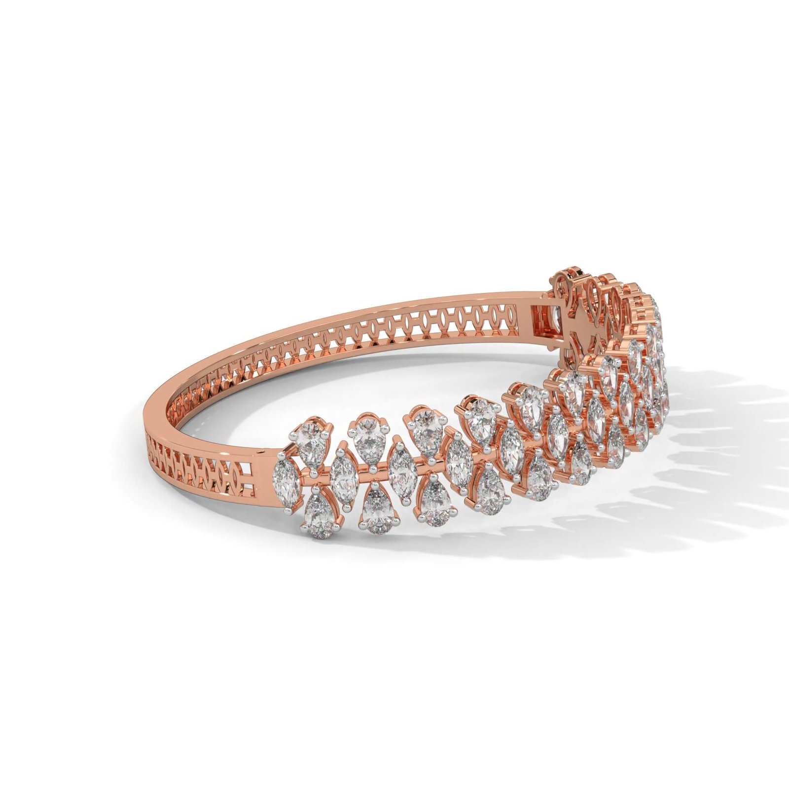 A statement piece blending 28 pear and 15 marquise diamonds in a mesmerizing lattice, with a total weight of 6.45 carats—ideal for celebratory occasions.