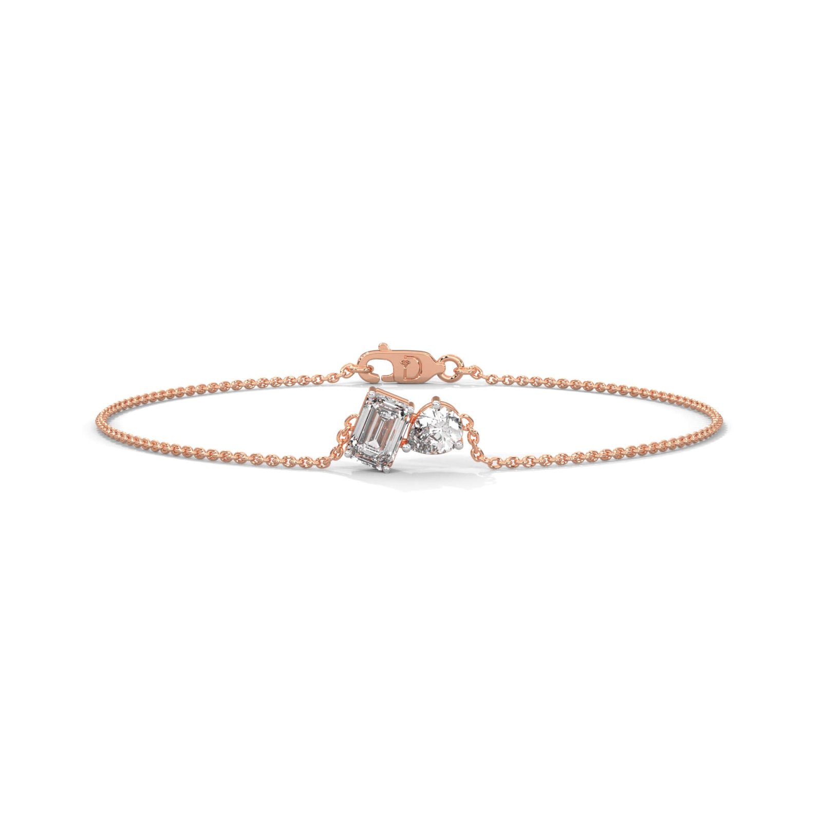 A graceful balance of shapes, this bracelet features a pear and emerald-cut diamond totaling 0.85 carats. A minimal silhouette with maximum elegance.