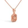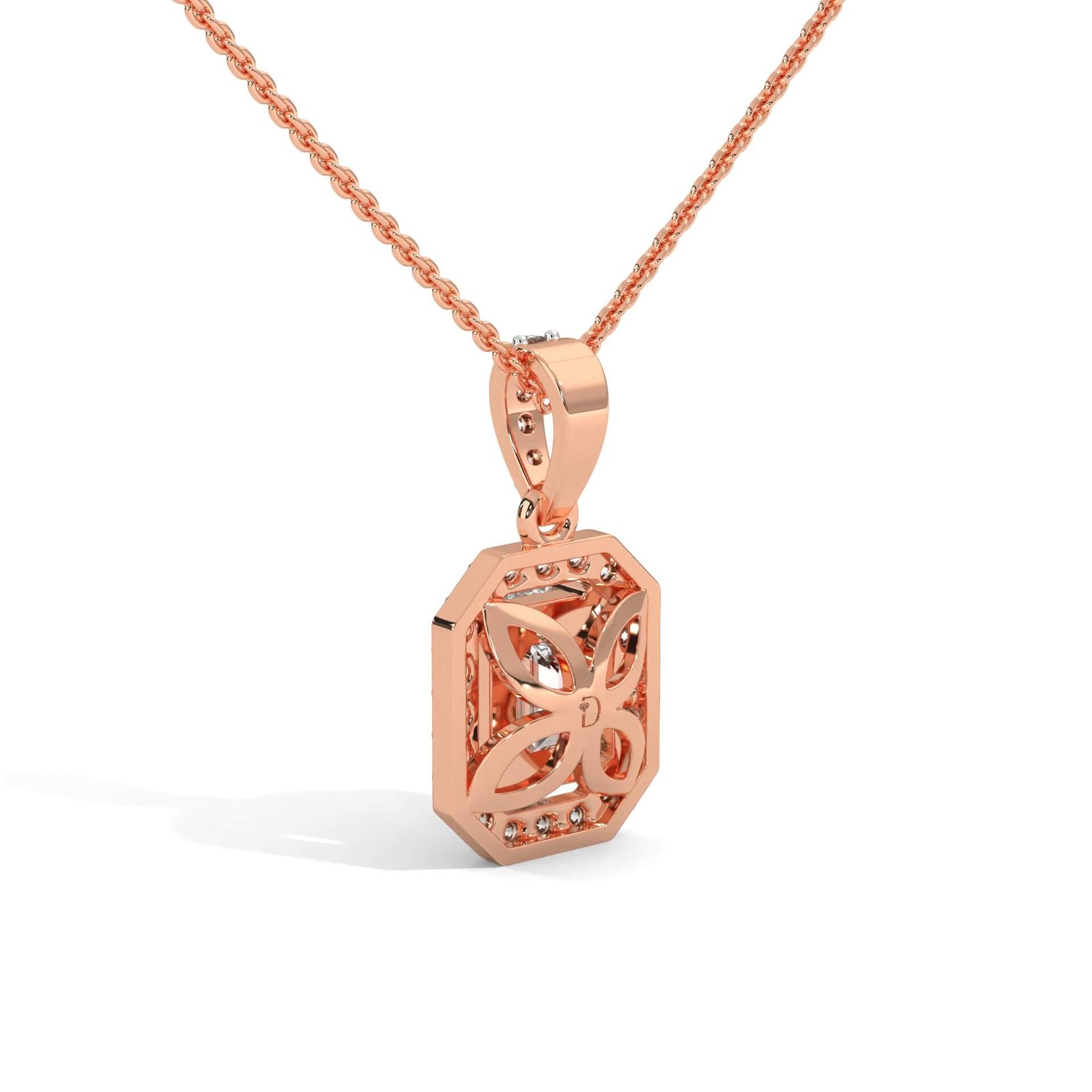 Description: A striking emerald-cut centerpiece surrounded by a halo of diamonds, this pendant radiates modern royalty with timeless grace.