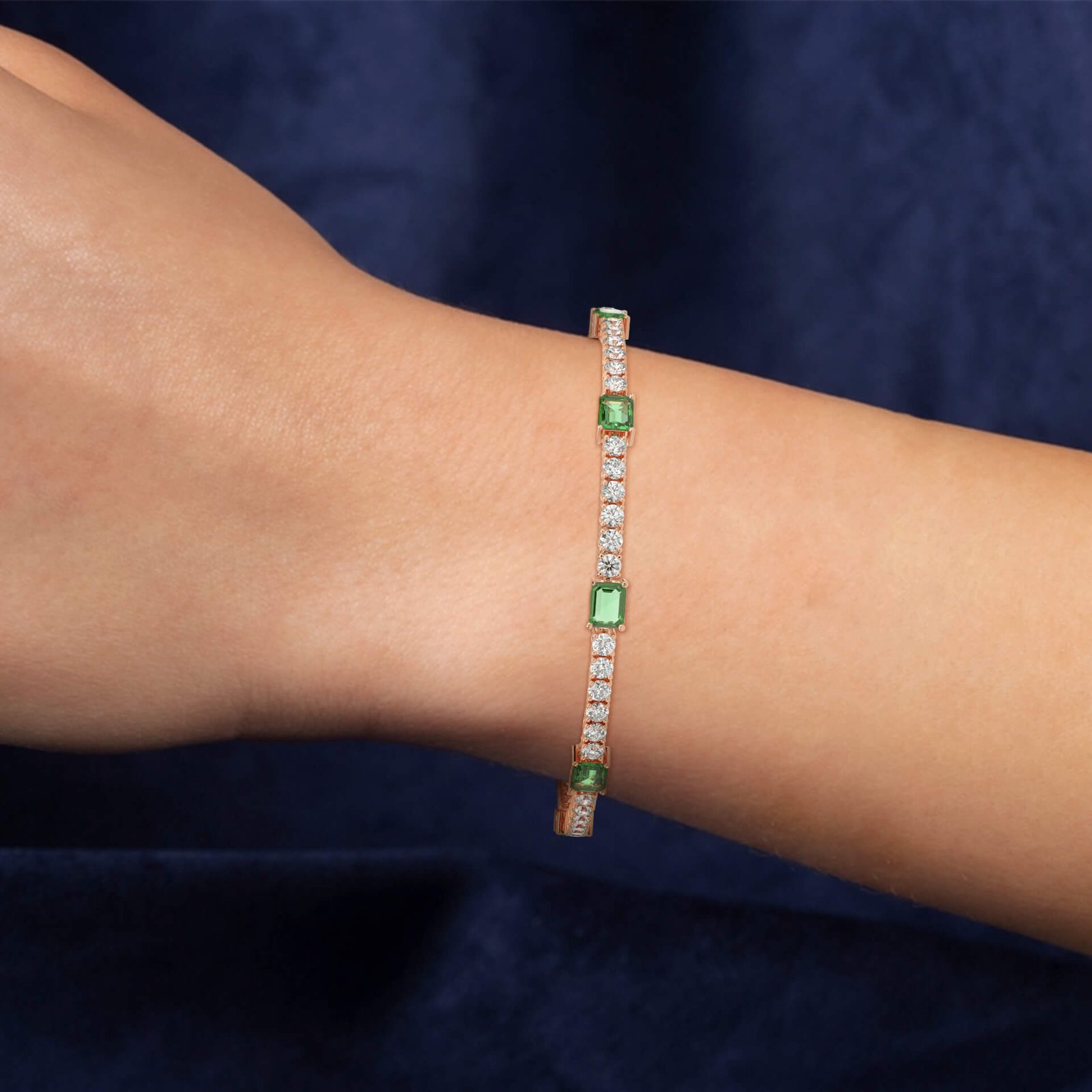 A refreshing blend of vivid emerald accents and 49 round diamonds totaling 2.94 carats, creating a graceful and lively symphony of green and sparkle.