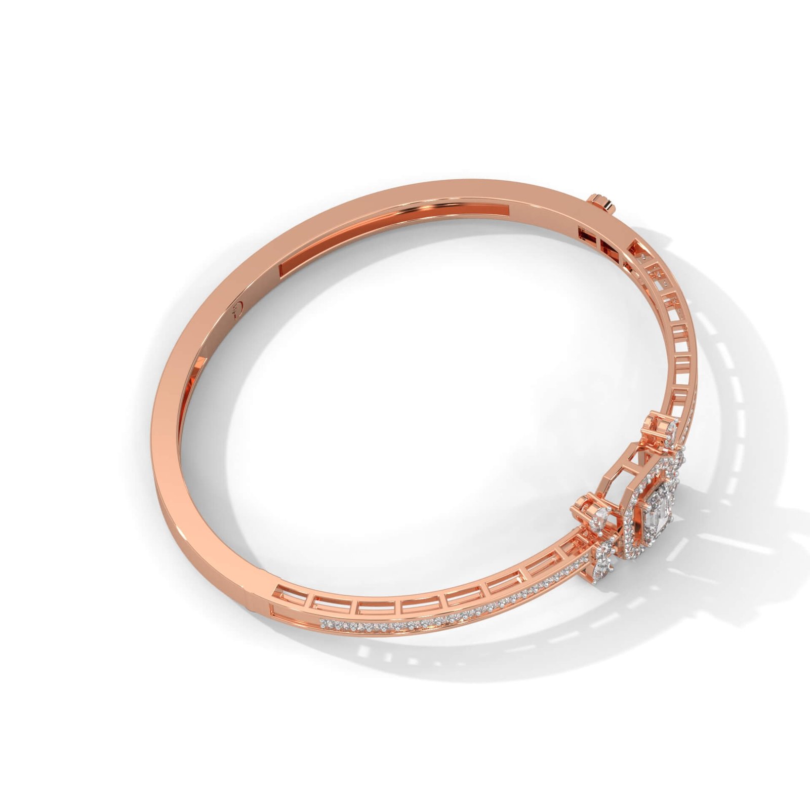 A modern classic crafted with an elegant emerald-cut center, the Eterna Bangle captures a timeless charm perfect for effortless sophistication.