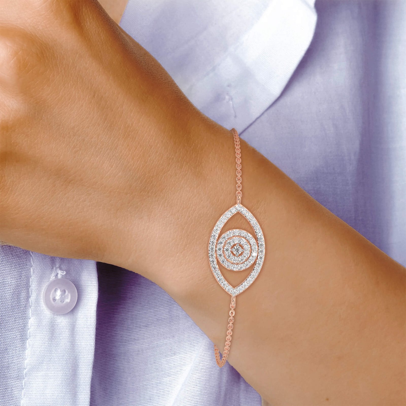 Channel positivity and protection with this eye-catching bracelet, featuring 59 round diamonds weighing 0.61 carats. The meticulously crafted evil eye motif adds a bold, fashionable flair.
