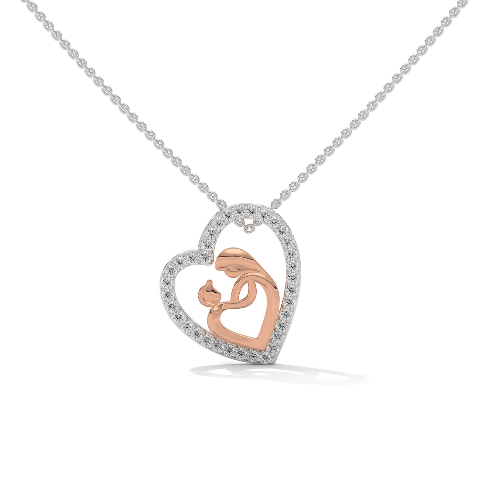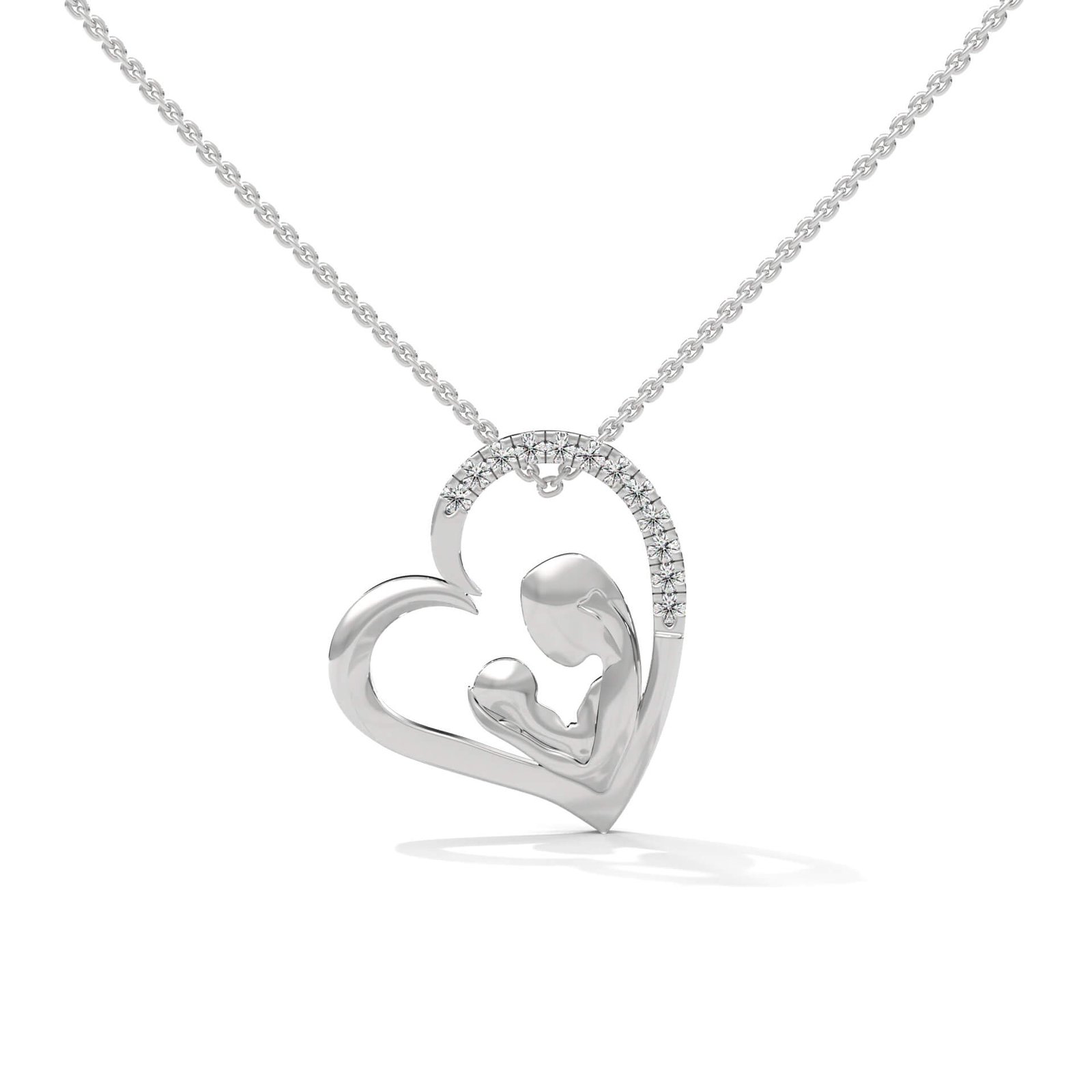 Two hearts interlock in this symbolic design featuring 18 round diamonds. With a delicate sparkle and eternal sentiment, it’s a timeless piece that honors everlasting bonds.