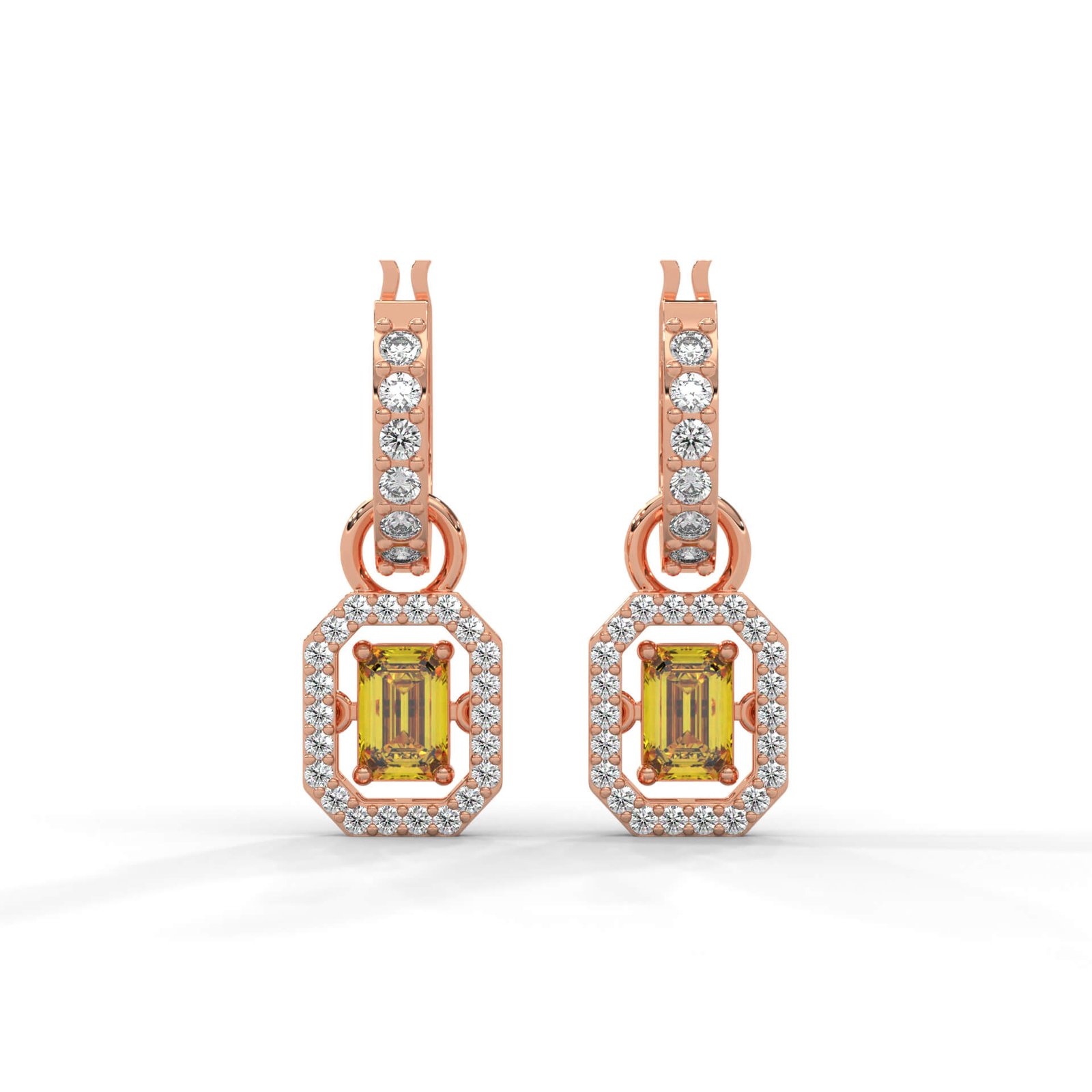 Accented with yellow-centered details and 64 round diamonds (0.82 carats), these drop earrings add a subtle yet refined glow to your evening style.