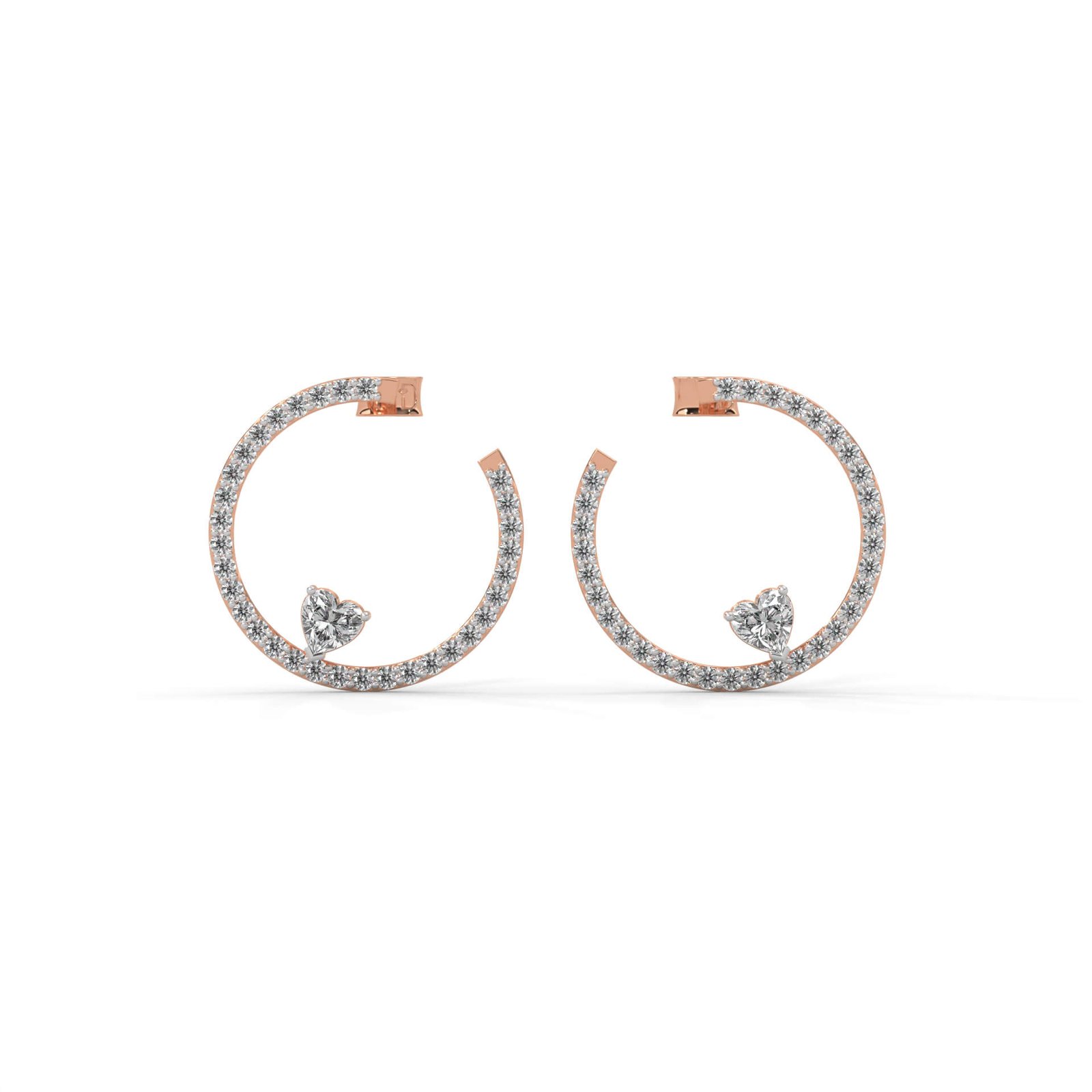 A mix of romance and radiance, these hoops feature 2 heart-shaped diamonds paired with 54 round brilliants, totaling 2.08 carats for a look that’s both elegant and bold.