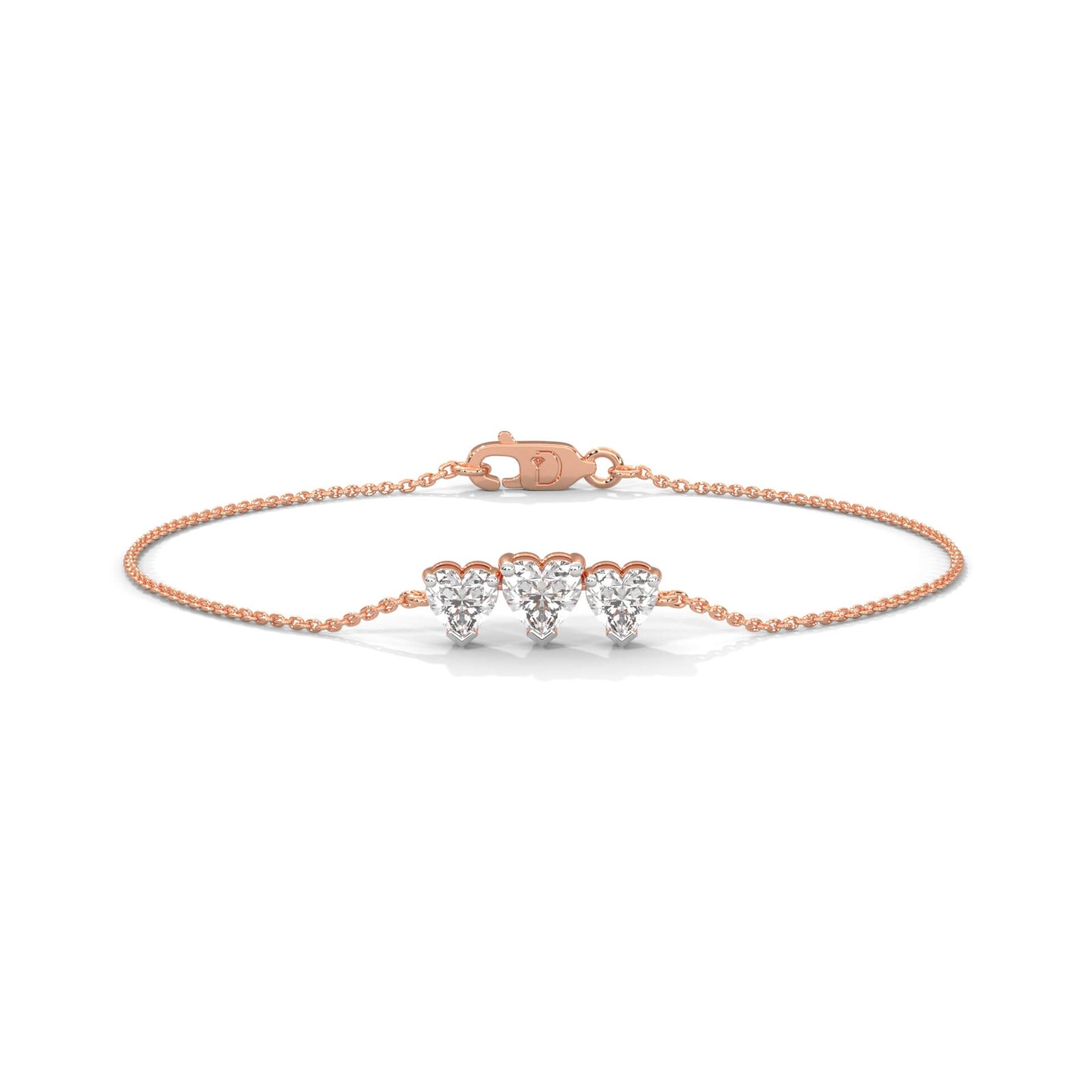 Three heart-shaped diamonds delicately arranged on a fine chain make this bracelet a symbol of enduring love. With a total diamond weight of 1.18 carats, it’s a perfect mix of elegance and sentimentality.
