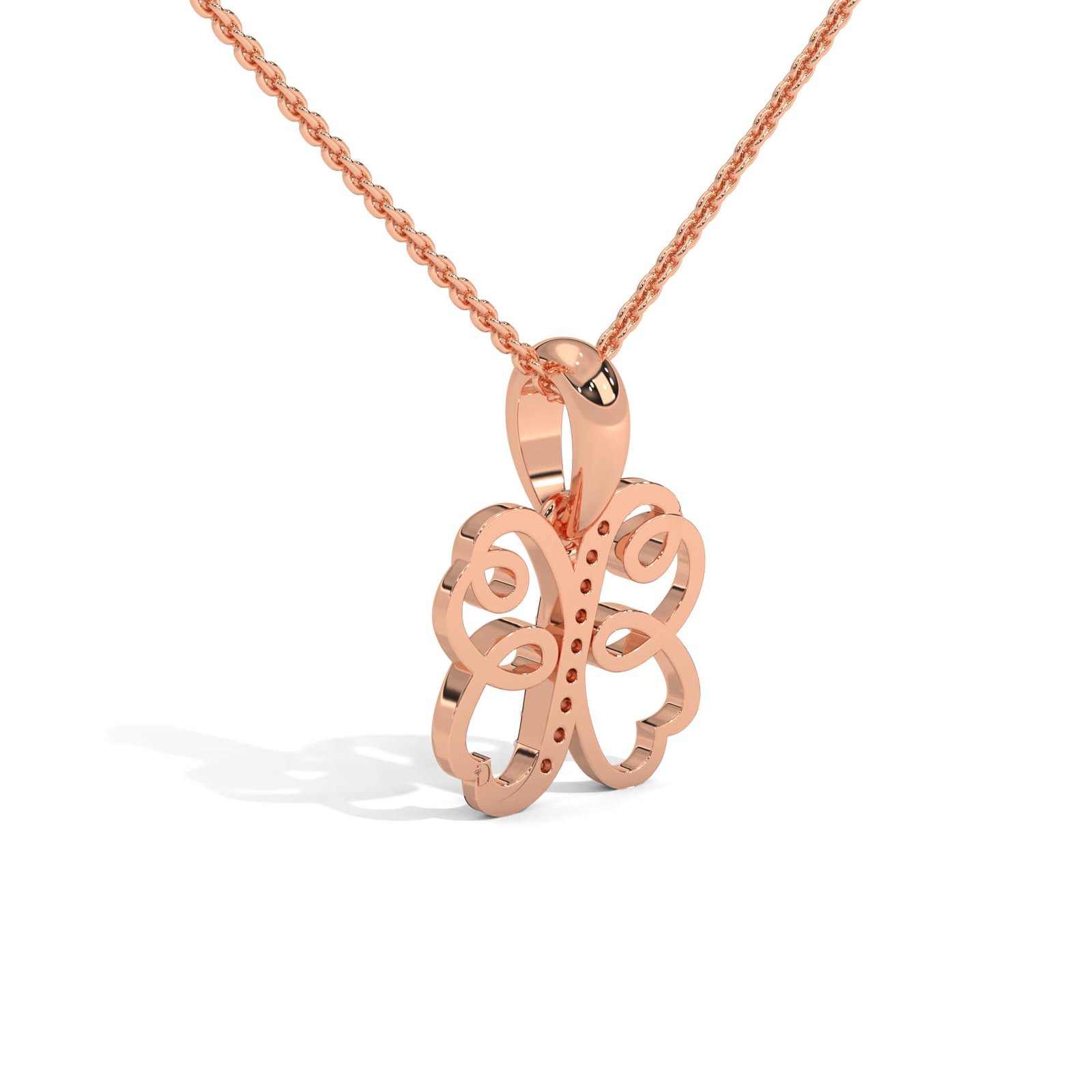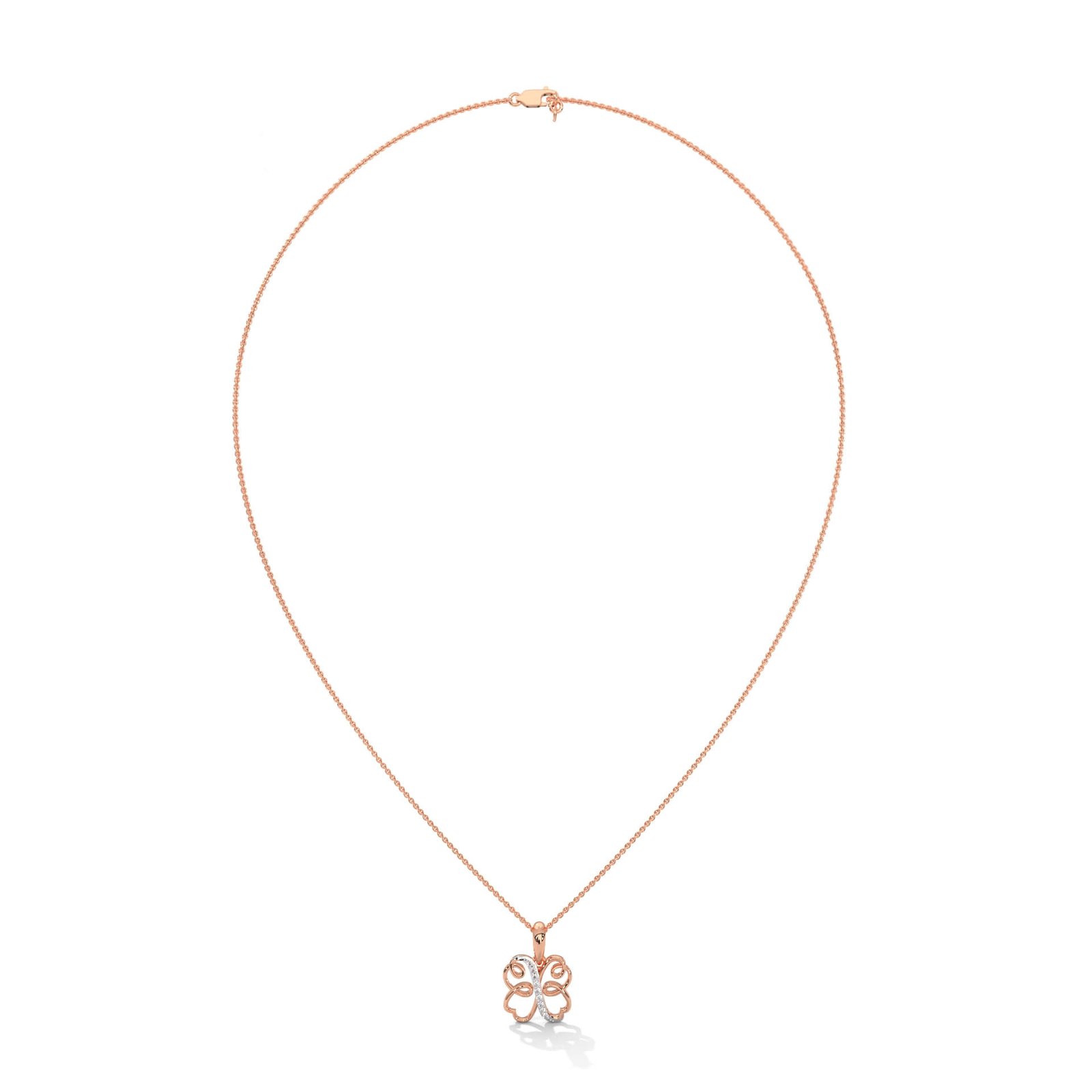 A graceful blend of symbolism and sparkle, this pendant features a clover design crafted with flowing infinity loops, accented by a streak of radiant diamonds—representing luck, love, and eternity.