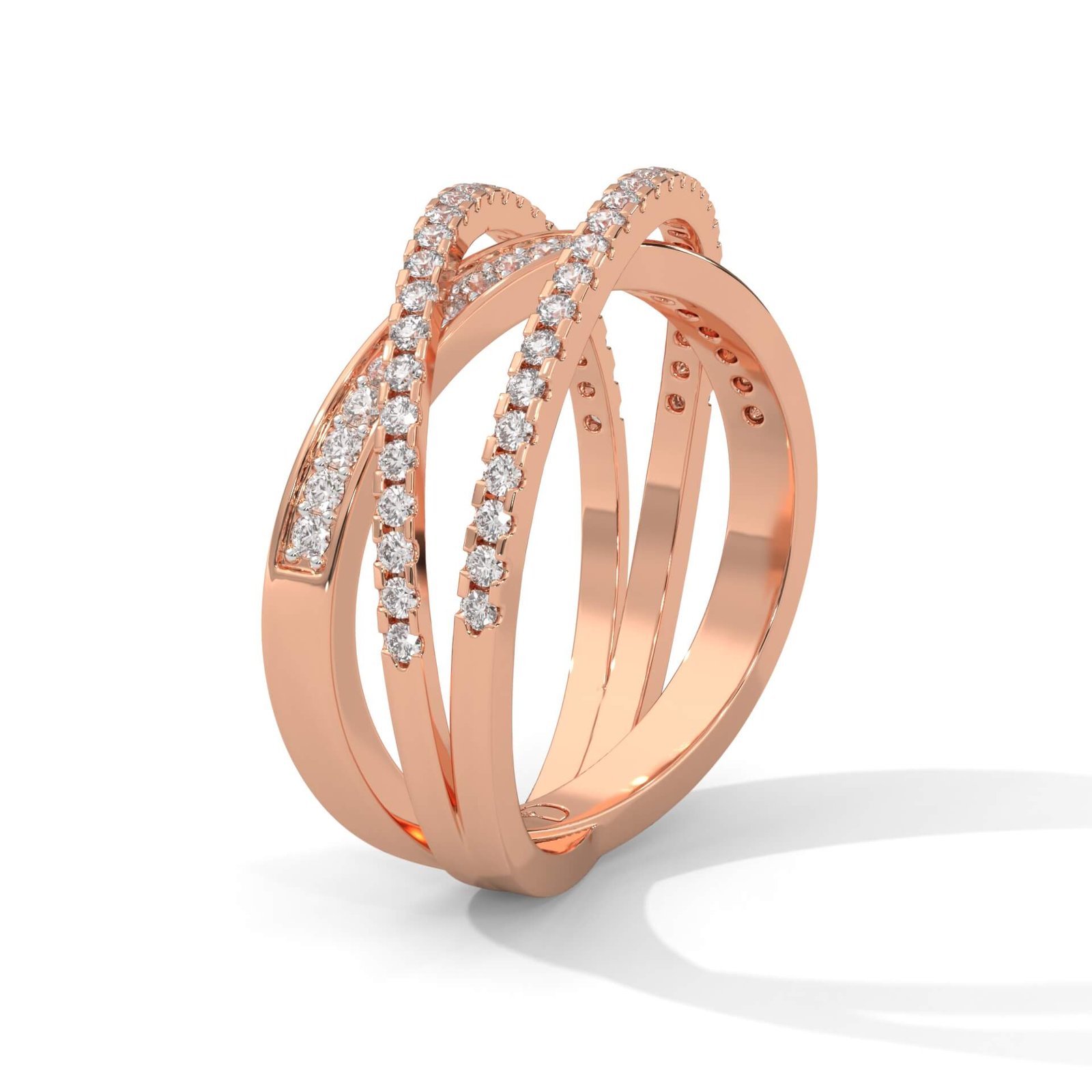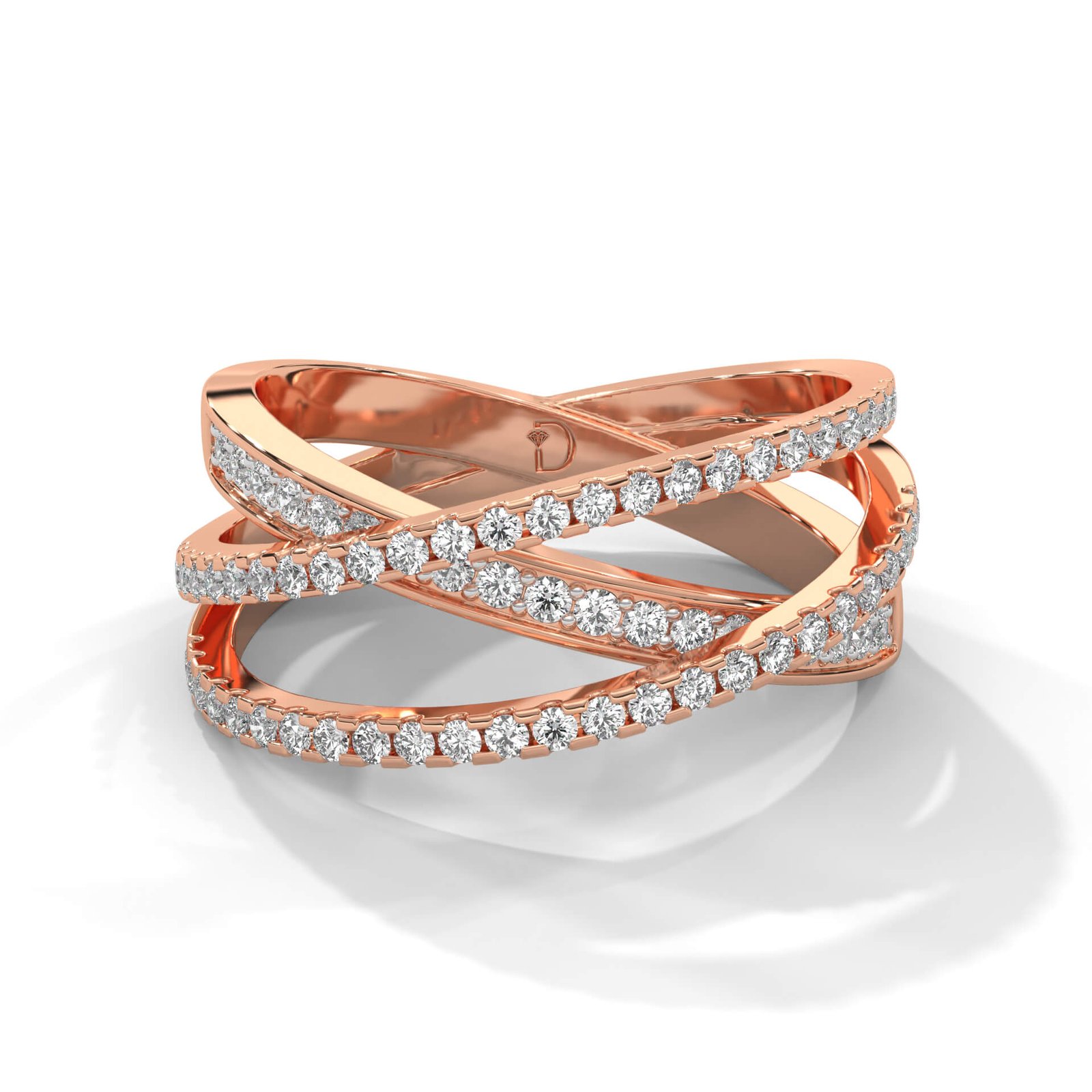 Criss-crossing bands set with 68 round diamonds totaling 0.48 ct create a dazzling symbol of endless elegance in this everyday statement ring.