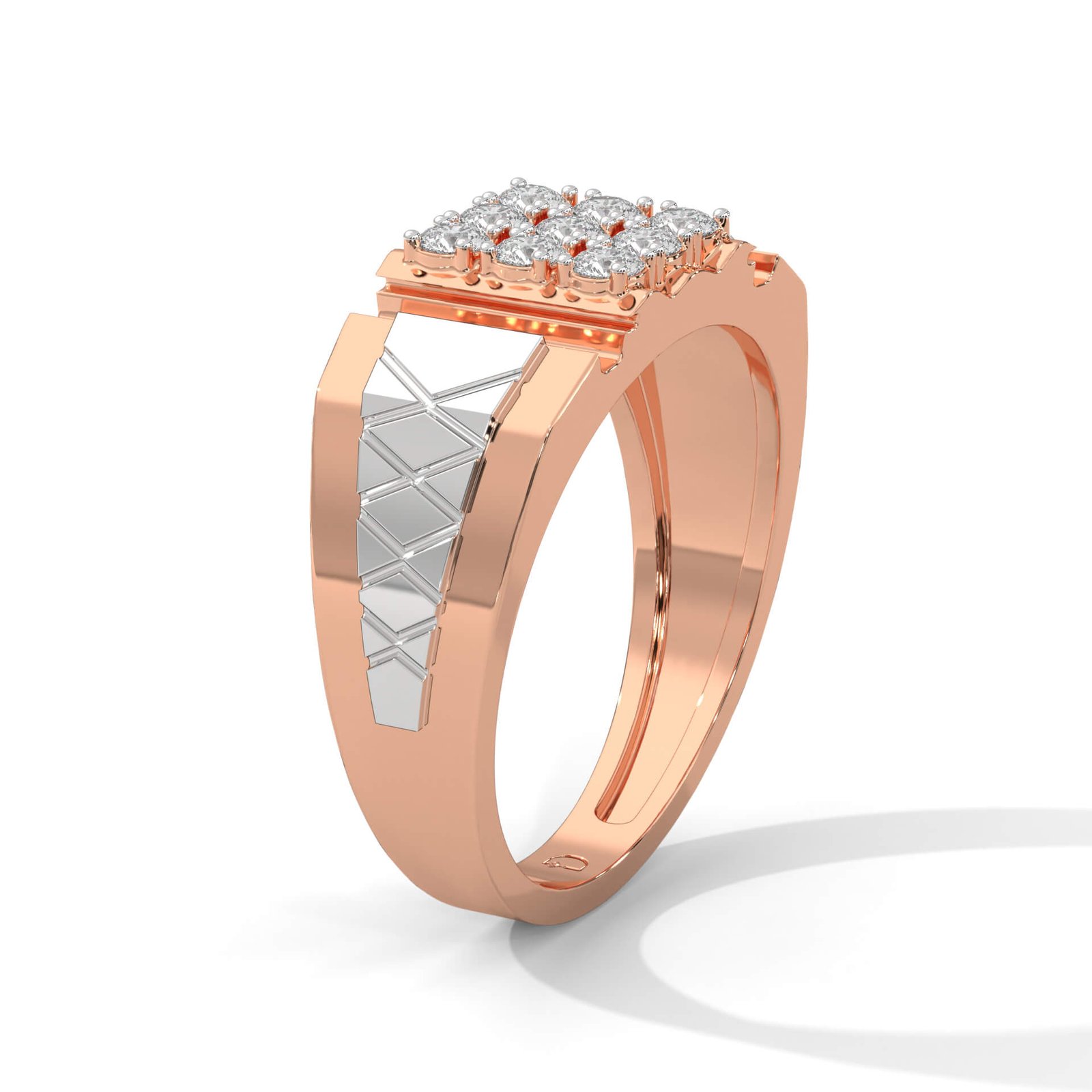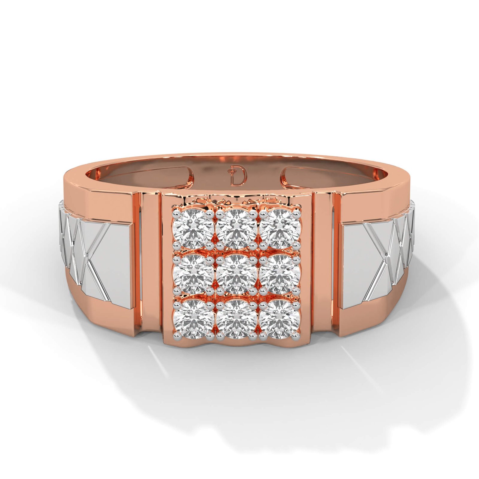 A bold, squared silhouette with 9 round diamonds (0.62 ct total) in a statement-making grid pattern, this ring showcases classic masculinity with modern sophistication.