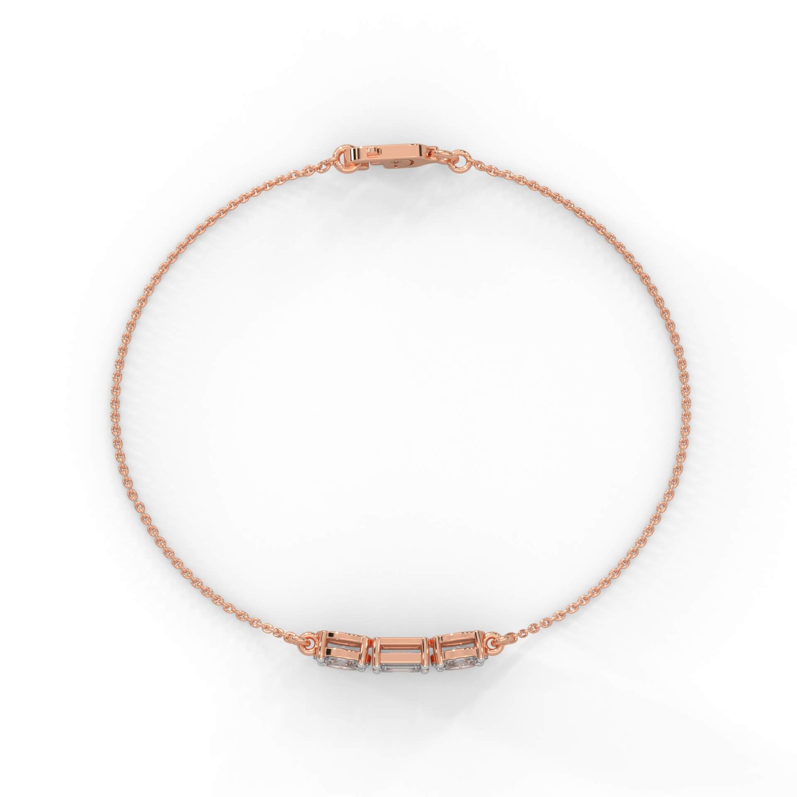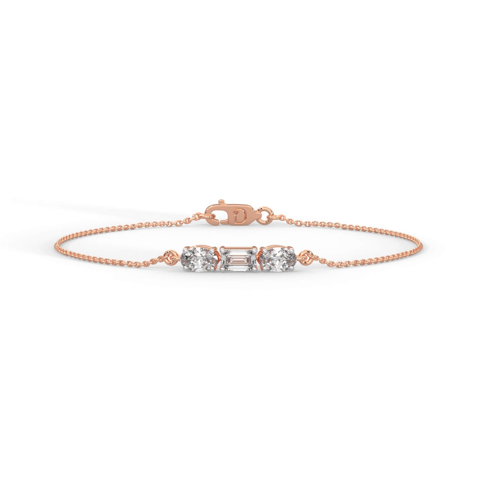 An artistic contrast of oval and emerald-cut diamonds creates a modern yet graceful design. This 0.95 carat piece brings a touch of minimalist sophistication to your wrist.
