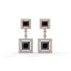 Modern and structured, these art deco–inspired drops feature 100 diamonds (1.64 carats) encasing glossy black centers in a statement geometric silhouette.