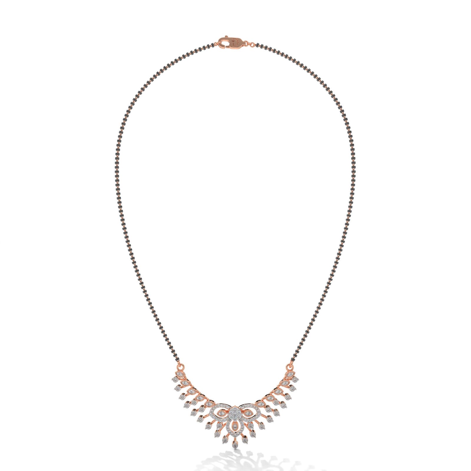 Inspired by the majestic elegance of a peacock, this mangalsutra dazzles with 78 diamonds totaling 0.56 ct. The detailed plume motif captures movement and grace—perfect for a bride who loves modern tradition.