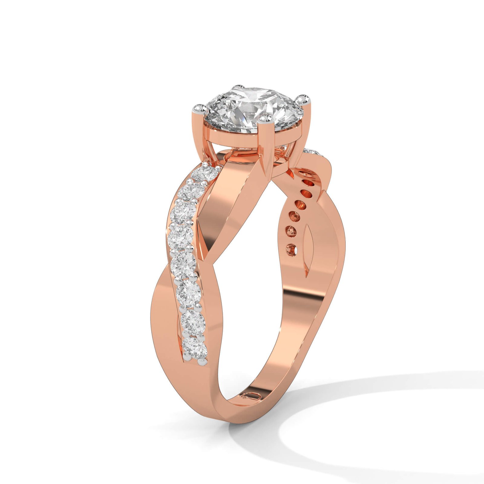 A commanding 1.25 ct round solitaire sits atop a soft, curved band adorned with 16 smaller diamonds, blending strength with elegance.