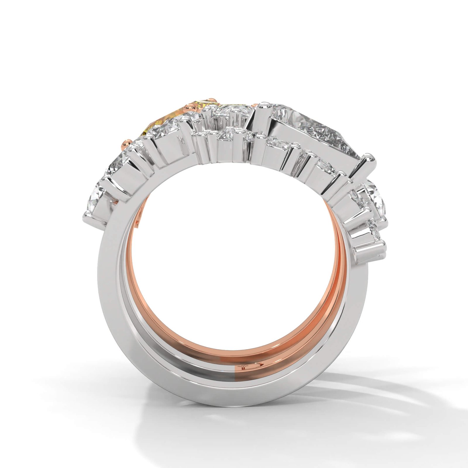 This statement three-ring ensemble dazzles with 26 round diamonds totaling 3.00 ct, crafted for those who wear their royalty with flair.