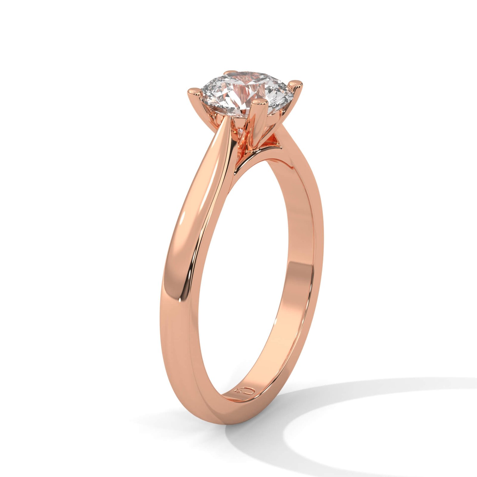 A sleek band holds a 1.0 ct round solitaire in elegant four-prong style – perfect for timeless, everyday brilliance.
