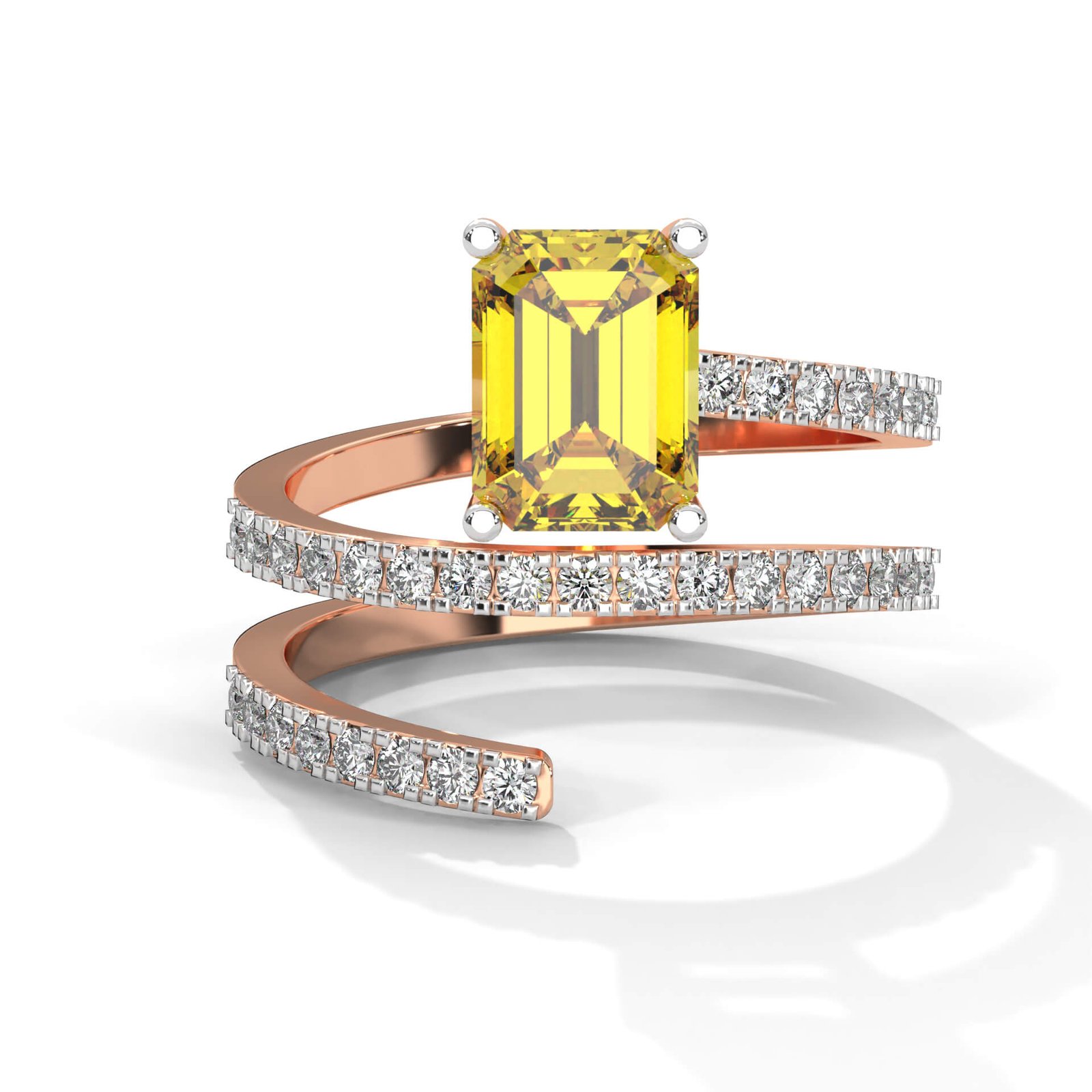 Bold and graceful, this twisted band ring showcases a radiant yellow center framed by 32 round diamonds totaling 0.48 ct for a striking contrast.