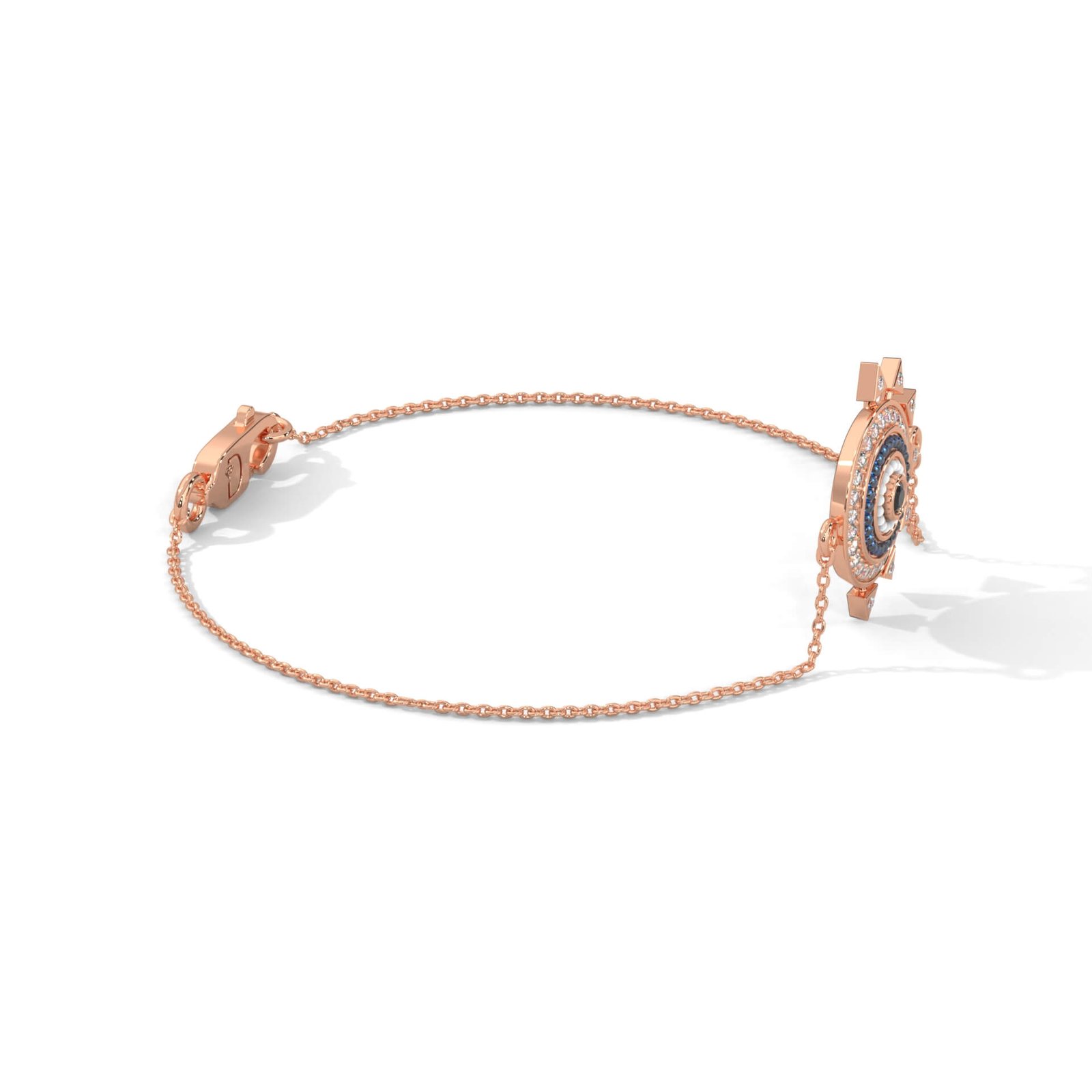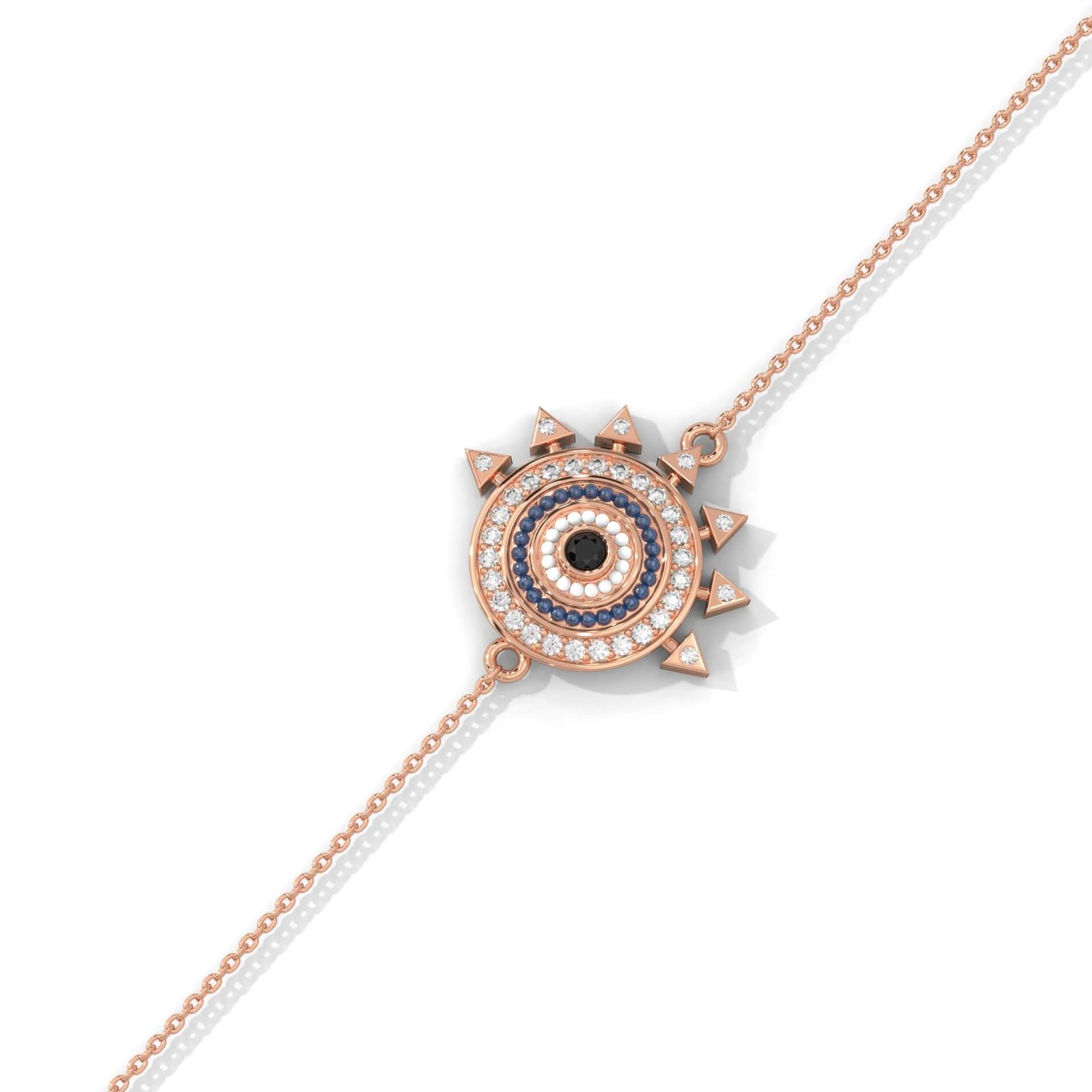 Inspired by ancient symbols of protection, this radiant bracelet features a sunburst evil eye center surrounded by 33 dazzling round diamonds totaling 0.25 carats. Perfect for warding off negativity with style.