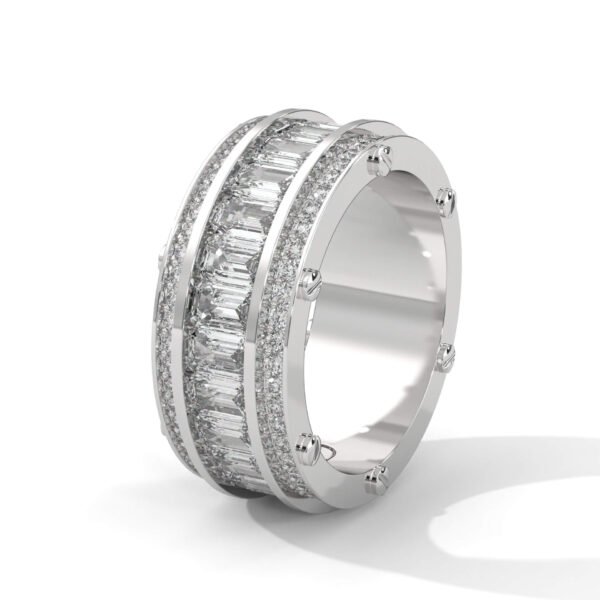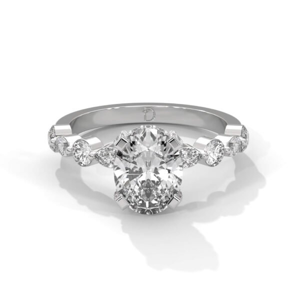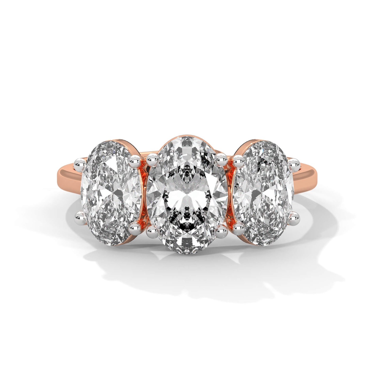 A dazzling trio of oval diamonds takes center stage, highlighted by a 1.0 ct center flanked by two 0.7 ct stones – a perfect harmony of brilliance and grace.