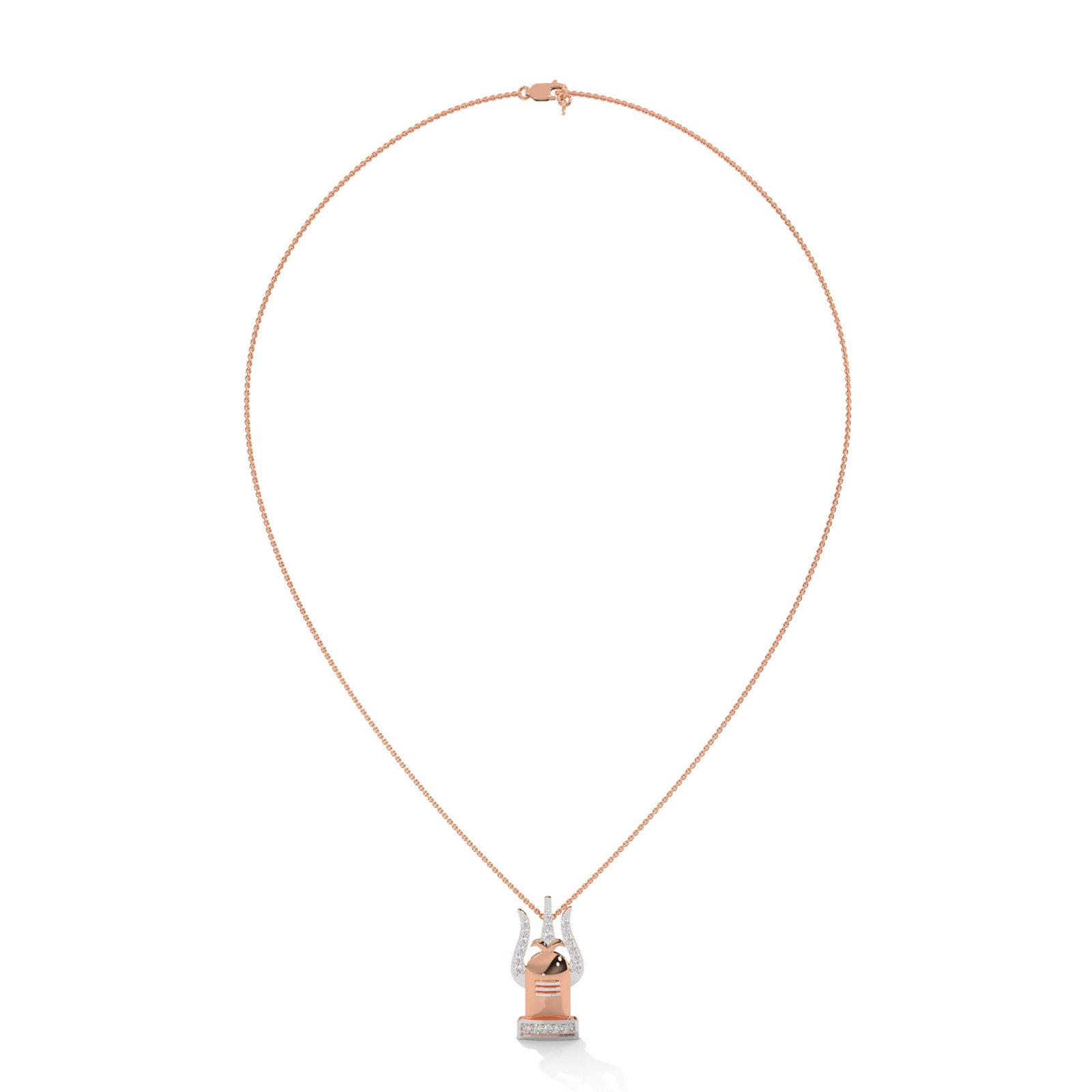 A divine Trishul and Shivling design, this pendant is adorned with 20 round diamonds totaling 0.28 ct, radiating spiritual strength and balance.