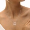 Two hearts intertwine with the word “mom” in golden script at their center—an elegant pendant that radiates affection and makes a thoughtful daily reminder of love.