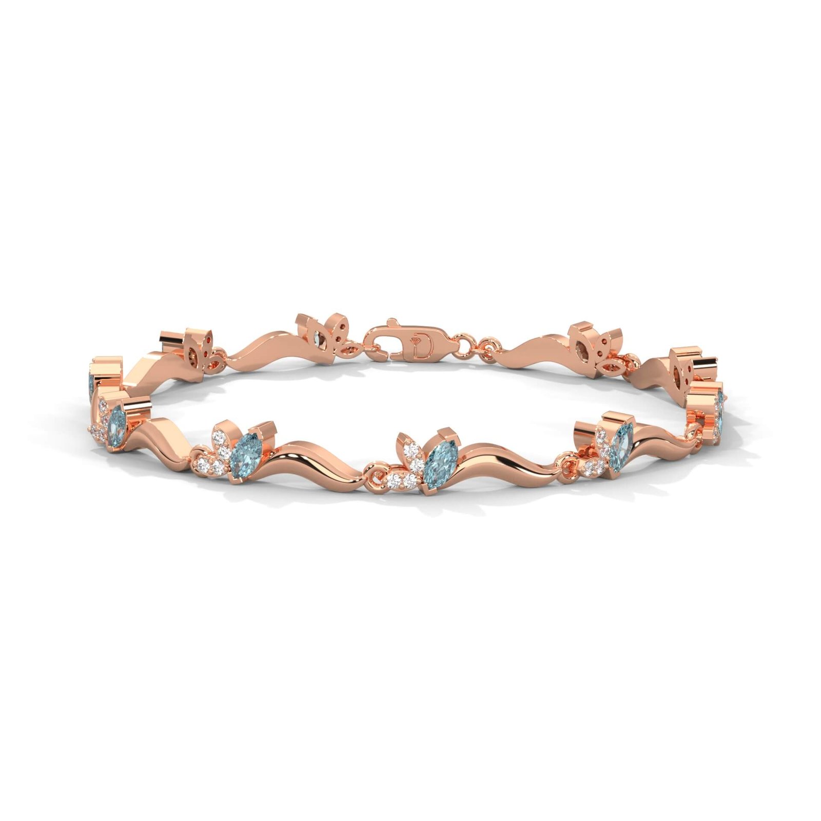 This unique bracelet features a wave-like design set with round diamonds, adding movement and sparkle to your wrist. A refreshing take on the classic line bracelet.